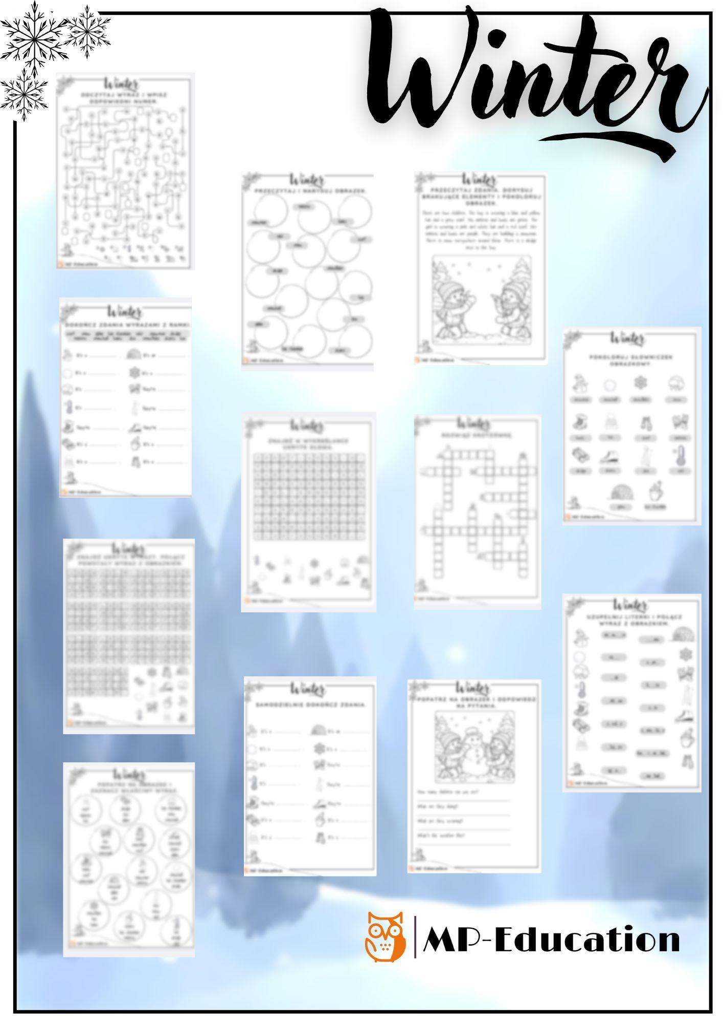 ❄️ Super zestaw zimowy, który pomoże wprowadzić, utrwalić i opanować słownictwo oraz proste struktury związane z zimą! Idealny na lekcje zimowe, przed feriami i po feriach ❄️