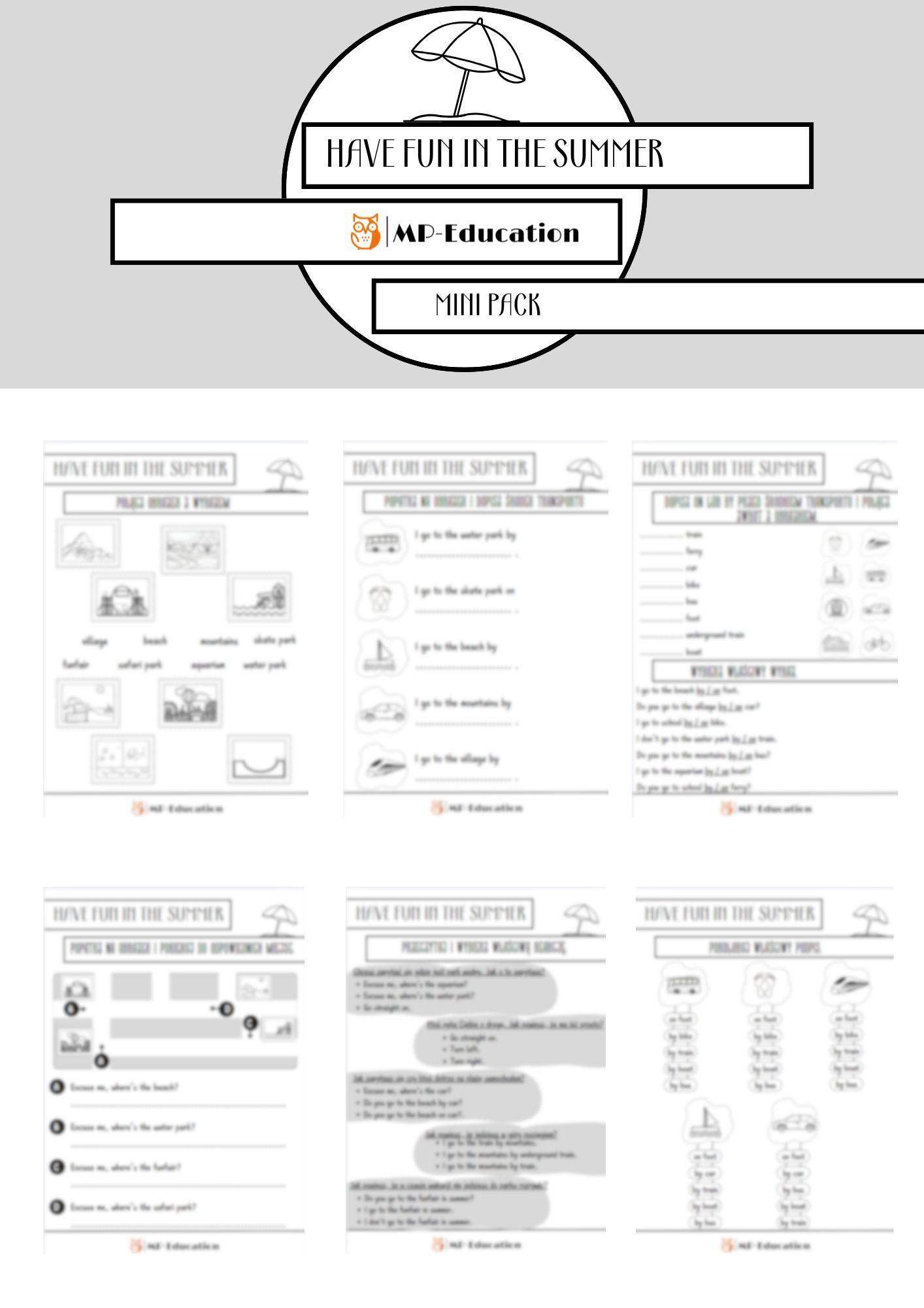 Karty pracy do nauki słownictwa związanego z wakacjami, środkami transportu i pytaniem o drogę. Poprzez zestaw poznamy nazwy wakacyjnych miejsc, nauczymy się pytać o drogę i wskazywać komuś drogę. Zestaw zawiera różne zadania, więc poćwiczymy zarówno słownictwo, jak i czytanie ze zrozumieniem i pisanie.
