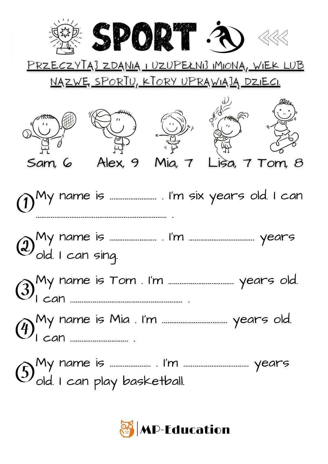 Zestaw, w którym poćwiczymy nazwy sportów oraz użycie czasownika can.