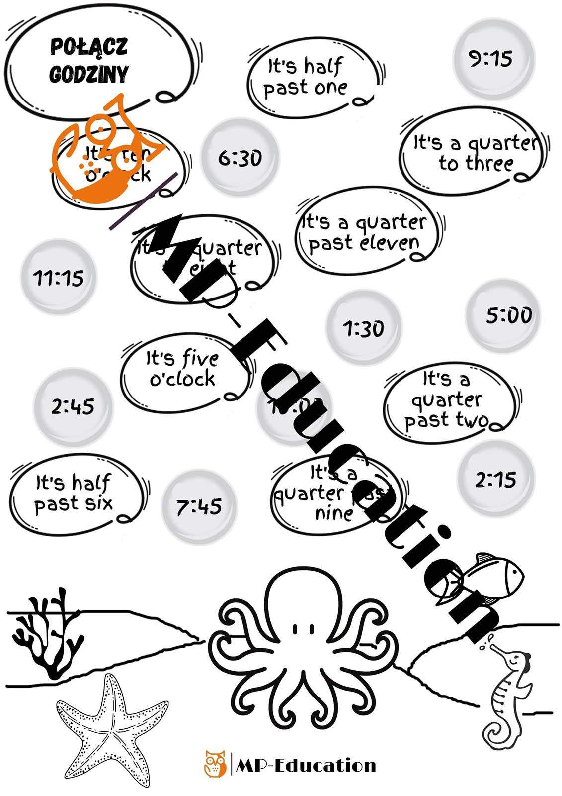 Darmowy zestaw 10 kart pracy do nauki godzin na języku angielskim. Karty pracy służą do nauki