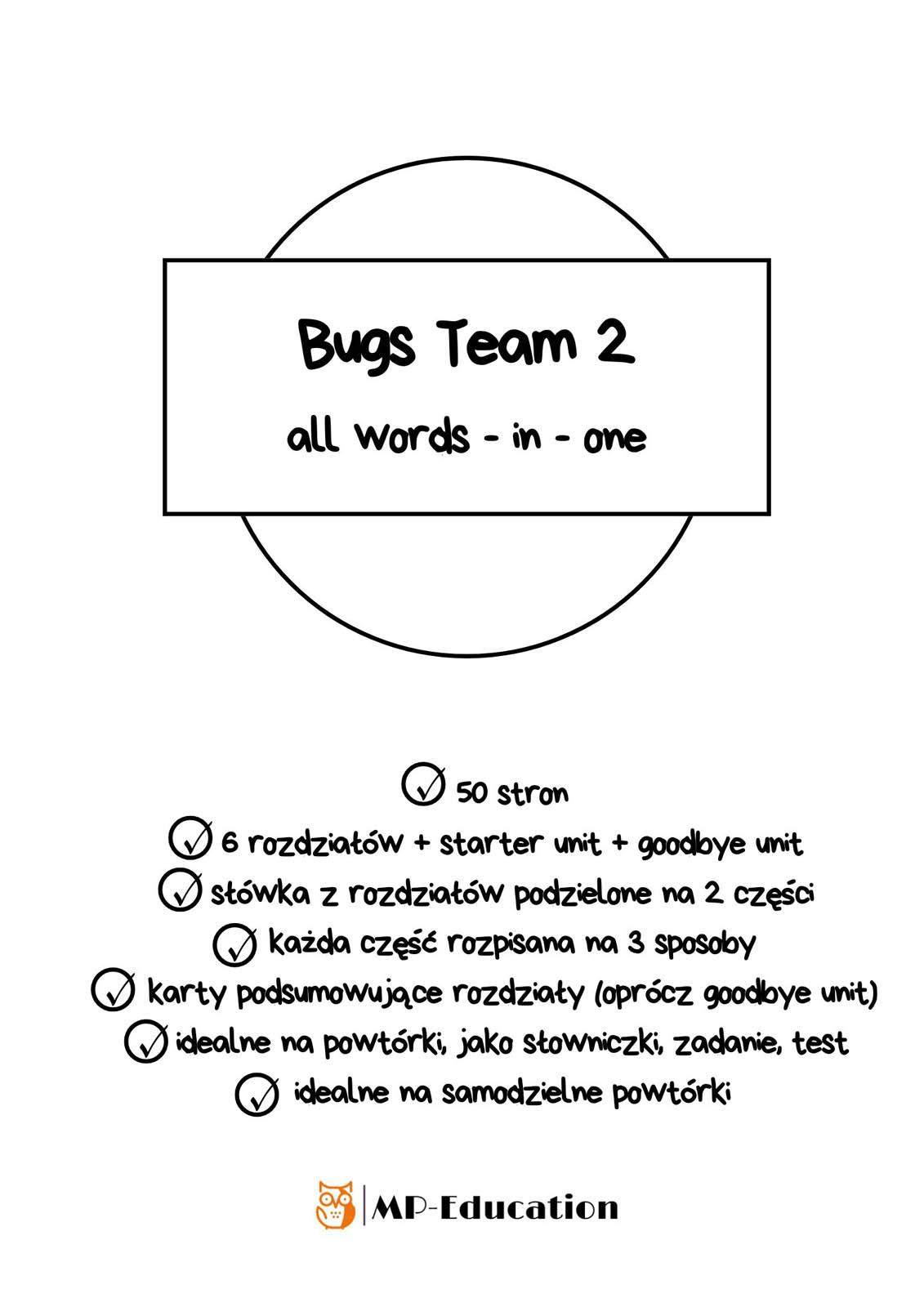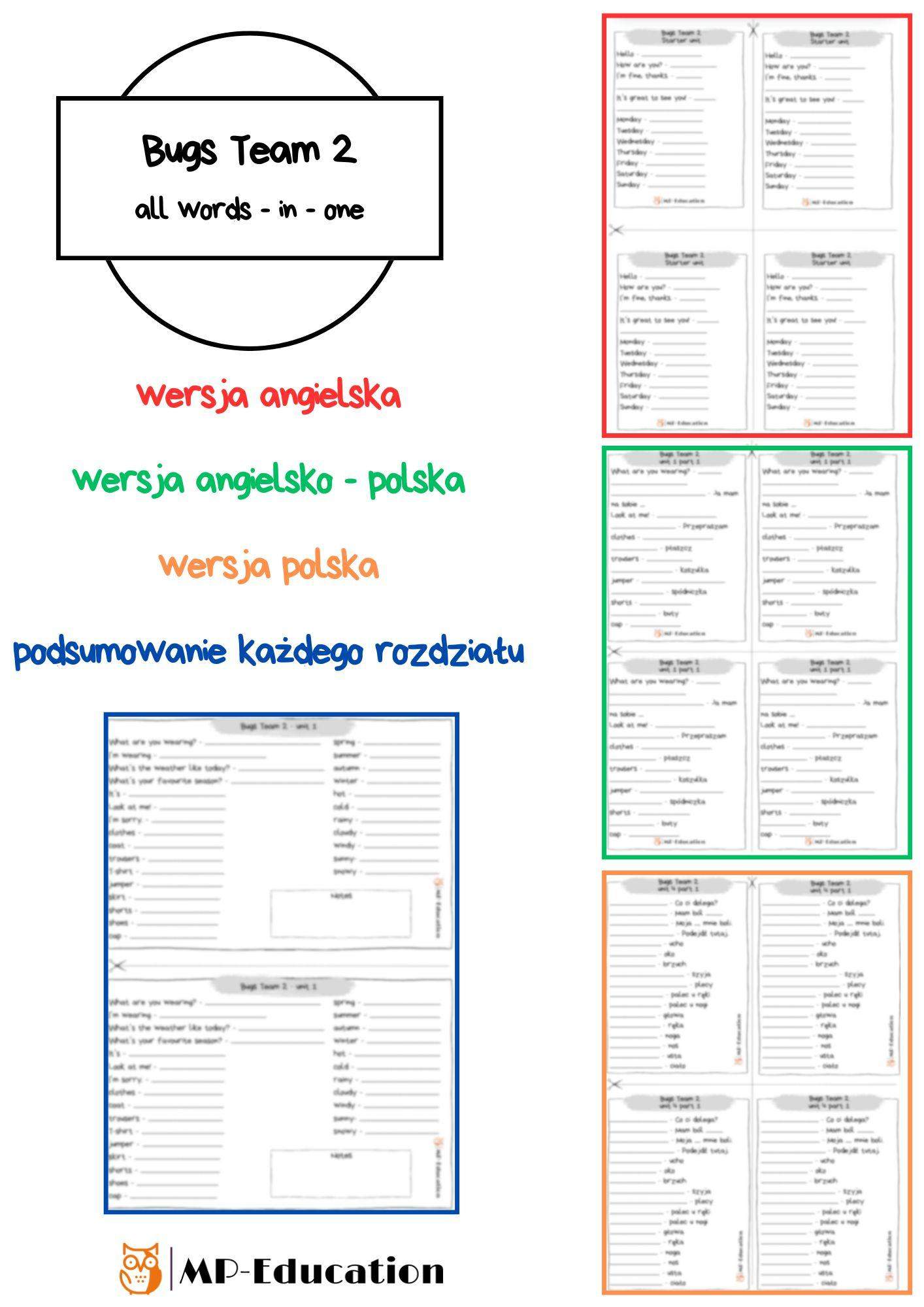 50 stron gotowych wklejek ze słownictwem do podręcznika Bugs Team 2 do wszystkich rozdziałów.